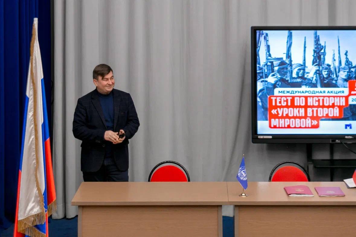 С приветственным словом к участникам акции обратился исполняющий обязанности ректора МГИК, Председатель регионального отделения Российского военно-исторического общества по городу Москве Дмитрий Сергеевич Сидоров. Он подчеркнул важность исторического знания как фундаментального инструмента формирования гражданской идентичности: «Для нас чрезвычайно важно, чтобы молодые люди не просто знали даты и факты, но понимали внутреннюю логику исторических процессов, осознавали цену мира и роль нашей страны в Победе. Тест подобного формата — это возможность не только проверить знания, но и почувствовать свою сопричастность к большой исторической памяти»